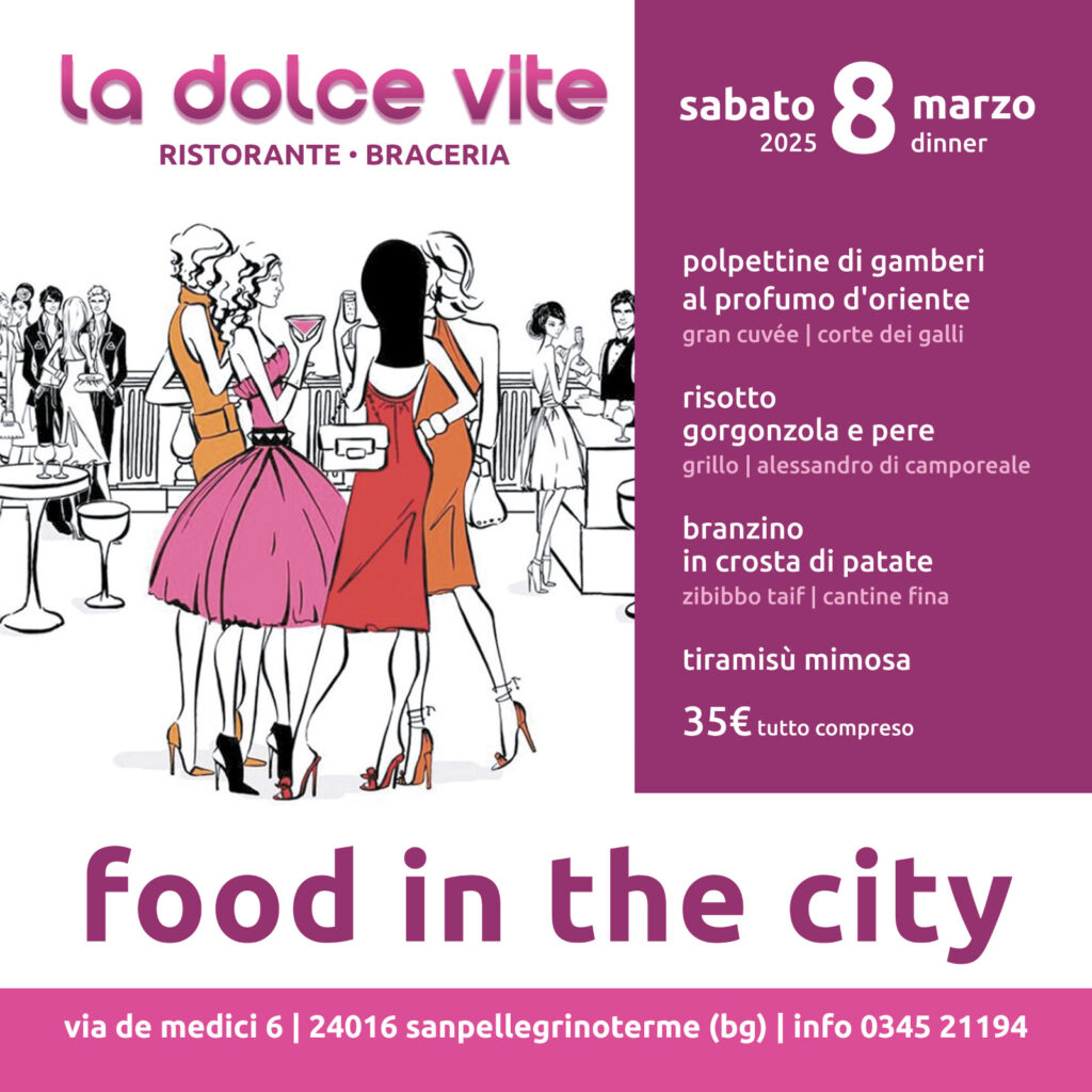 FOOD IN THE CITY L’ 8 marzo a La Dolce Vite
